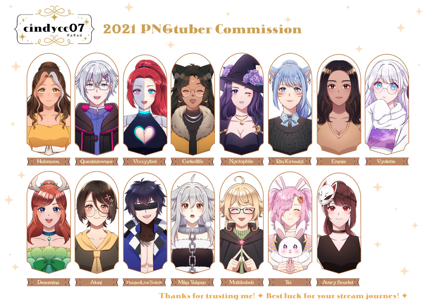 Are you planning to start streaming or creating contents with anime-looking avatar? I can draw you / your OC as PNGtuber or Live2d Model in my style! ✨Here are some samples of my precious children!